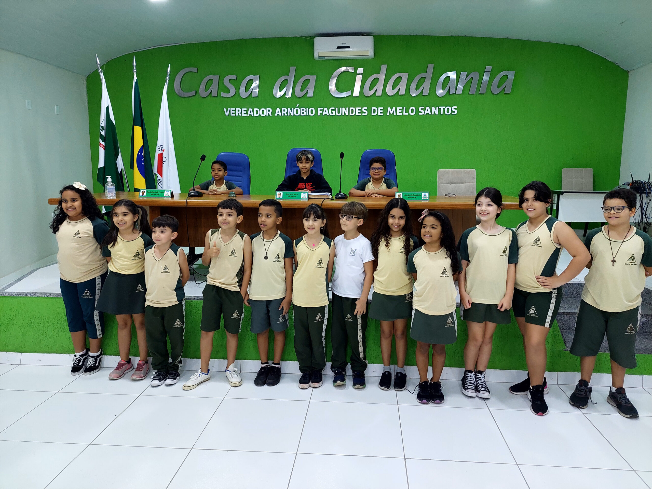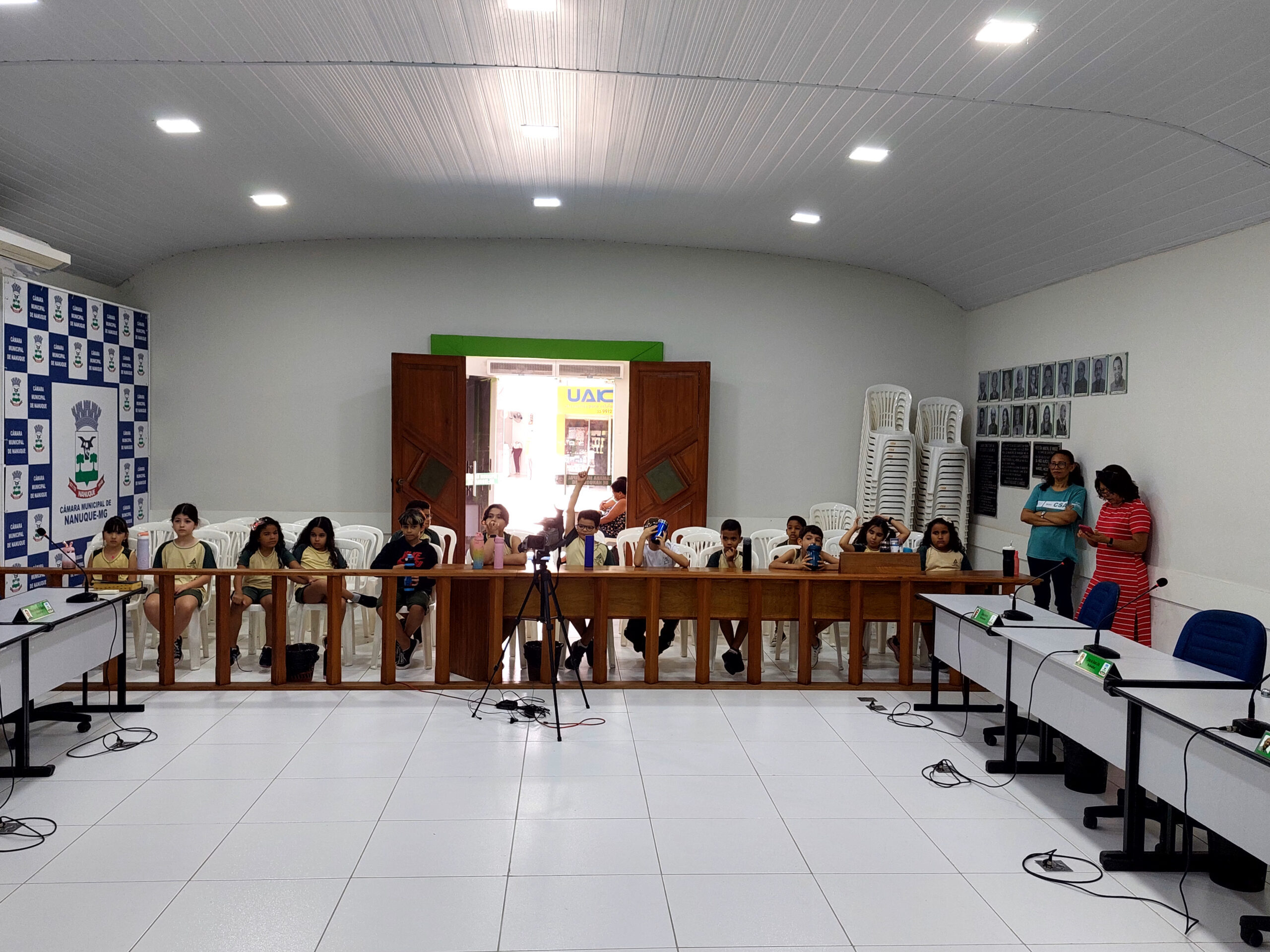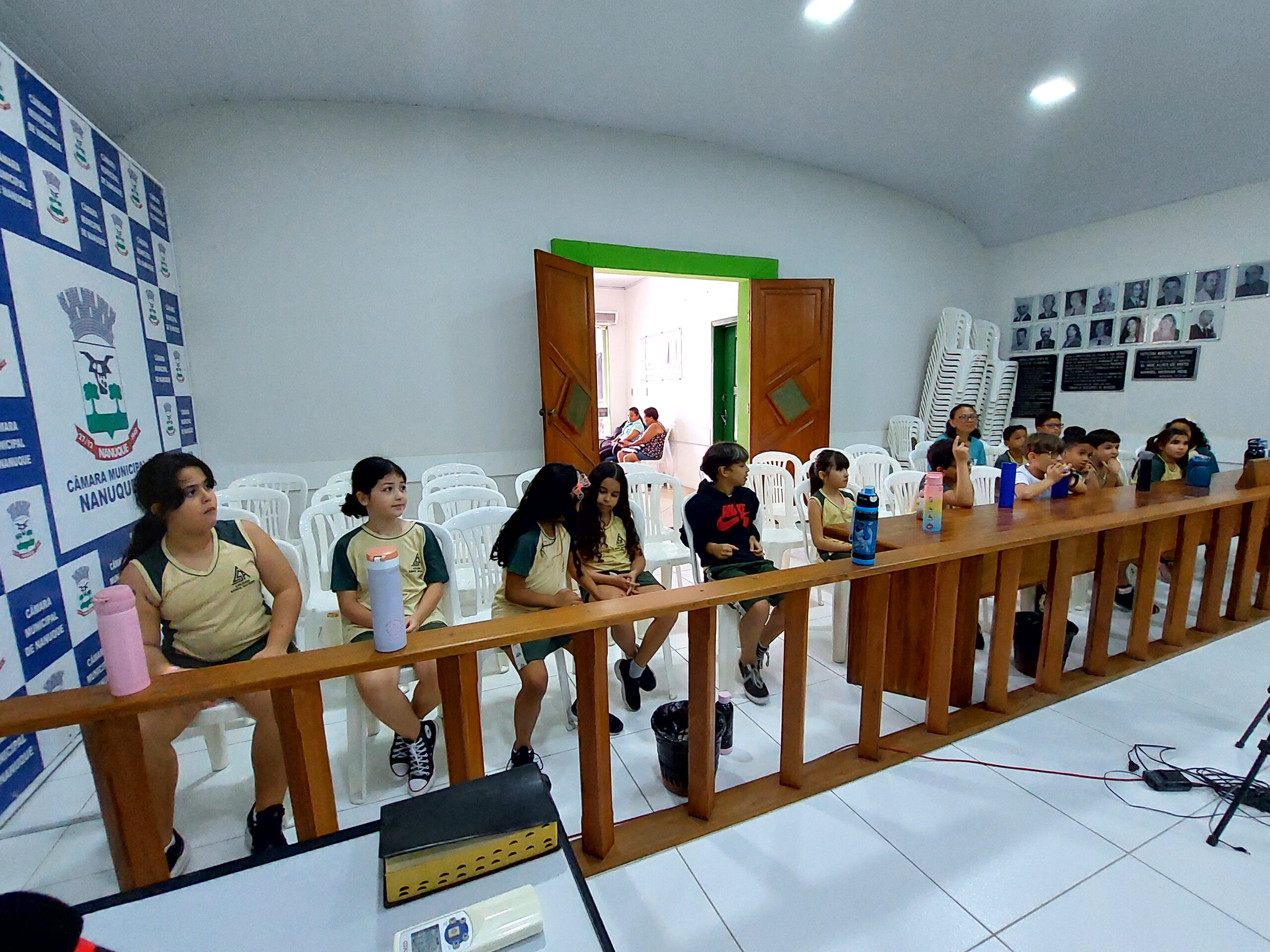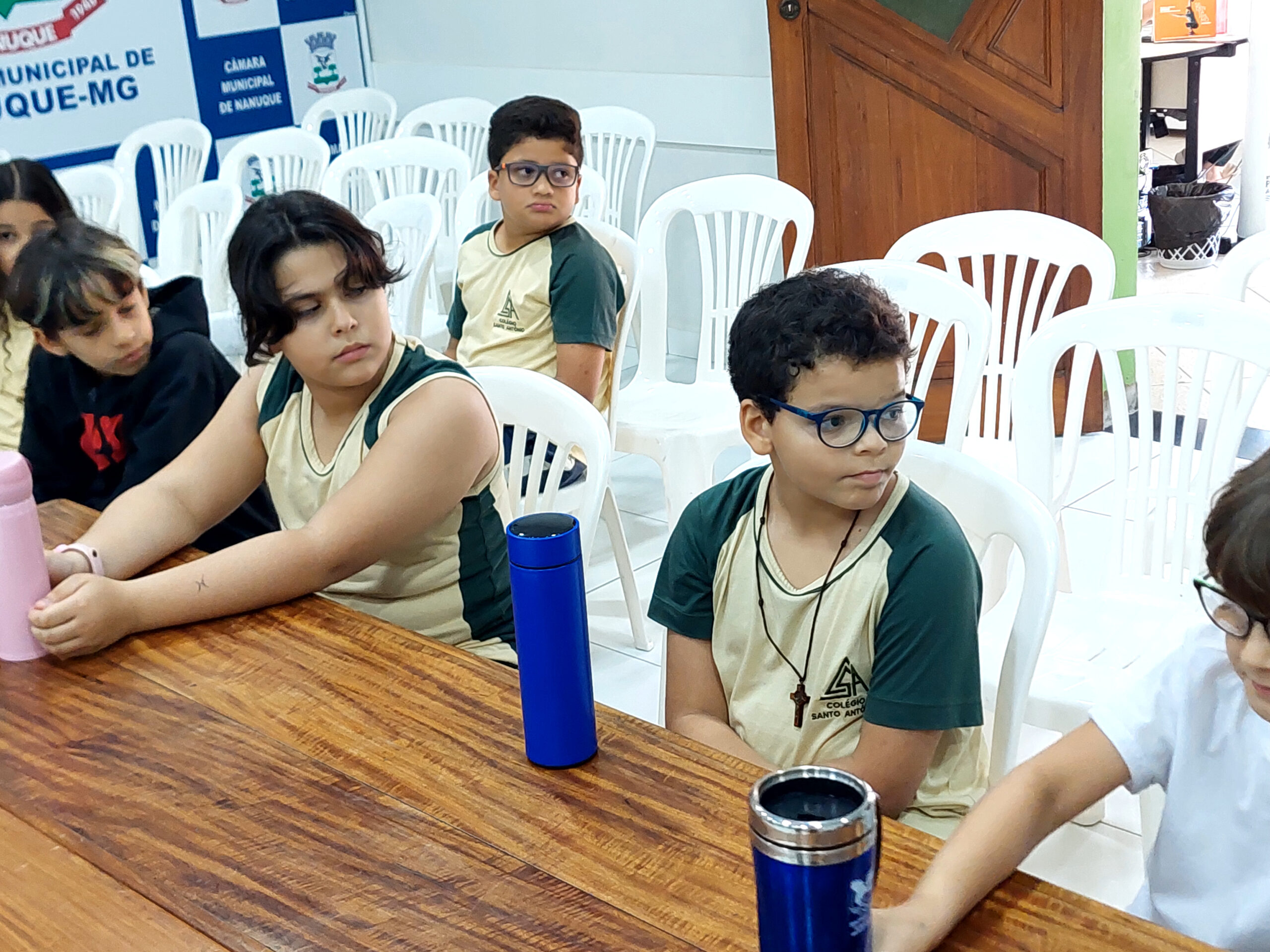 A Câmara Municipal de Nanuque recebeu na tarde desta quarta-feira (30), a visita de cerca de 20 estudantes do 3º ano do ensino fundamental do Colégio Santo Antônio. Os alunos foram recepcionados no Plenário da Câmara pela Diretora de Secretaria, Valdirene Aparecida Santos Passos.