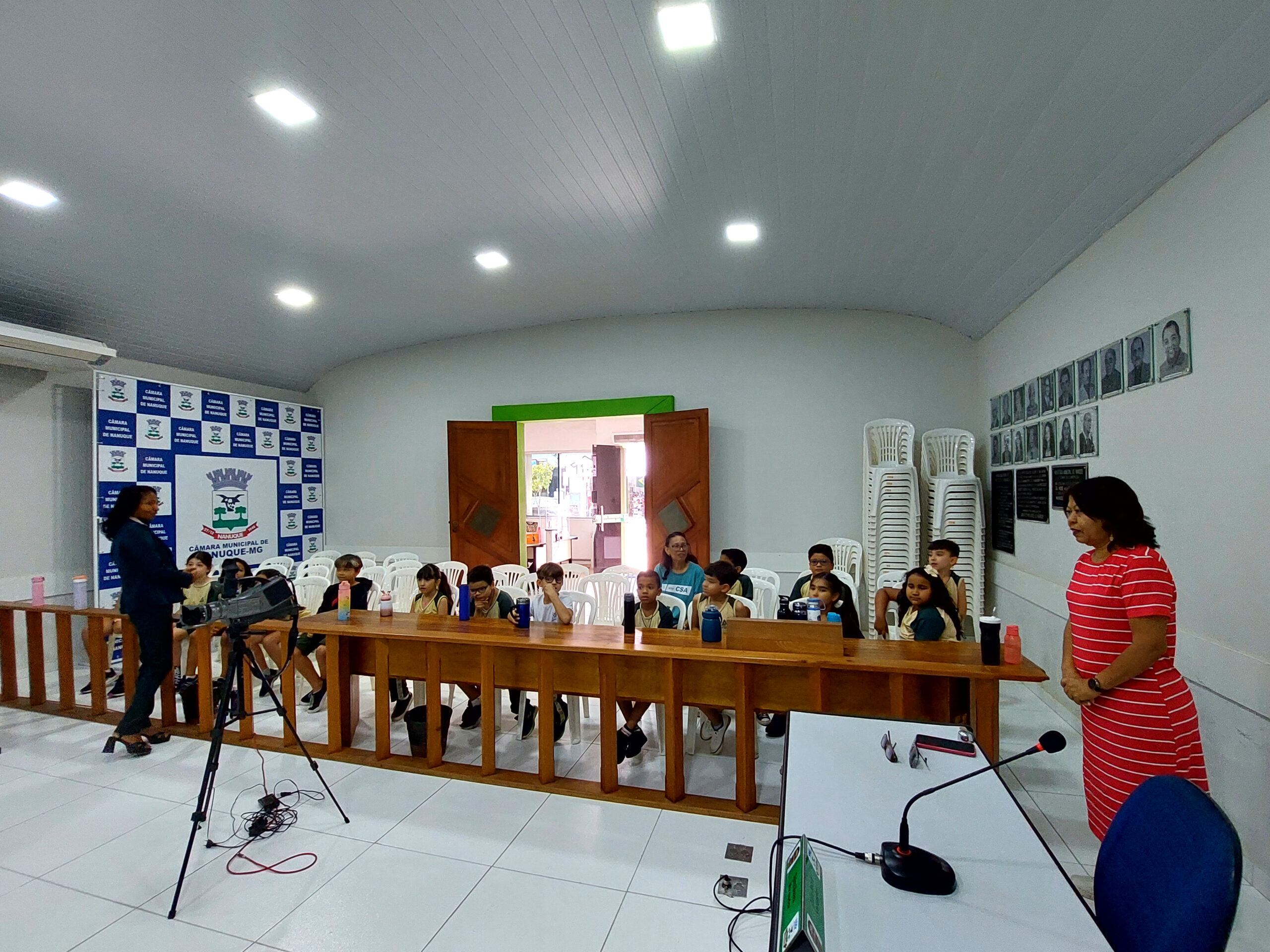 Acompanhados da professora Ederly Dalva e coordenadora Neide Ramos, os estudantes conheceram um pouco sobre as atribuições dos vereadores e funcionamento da Câmara.