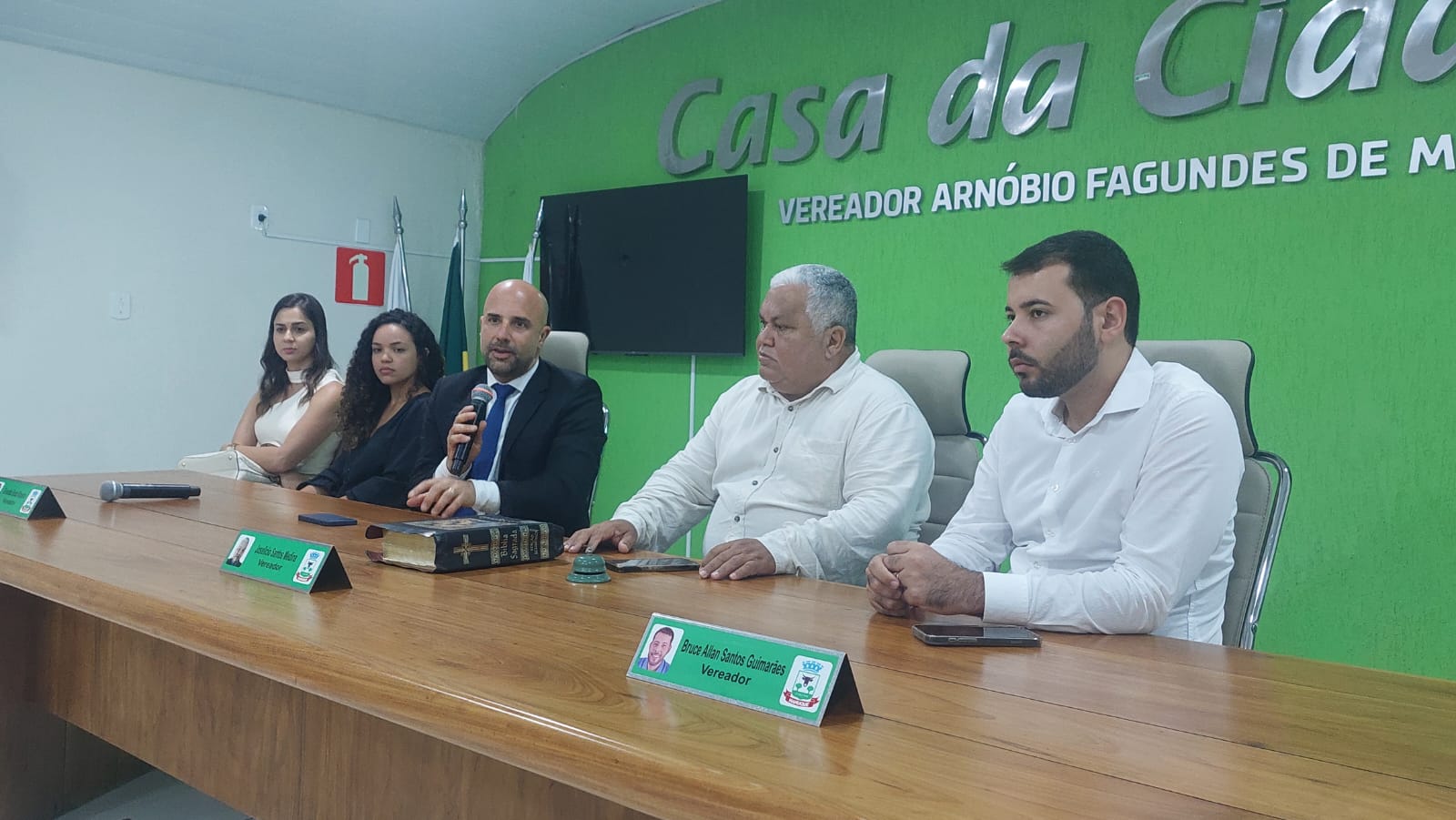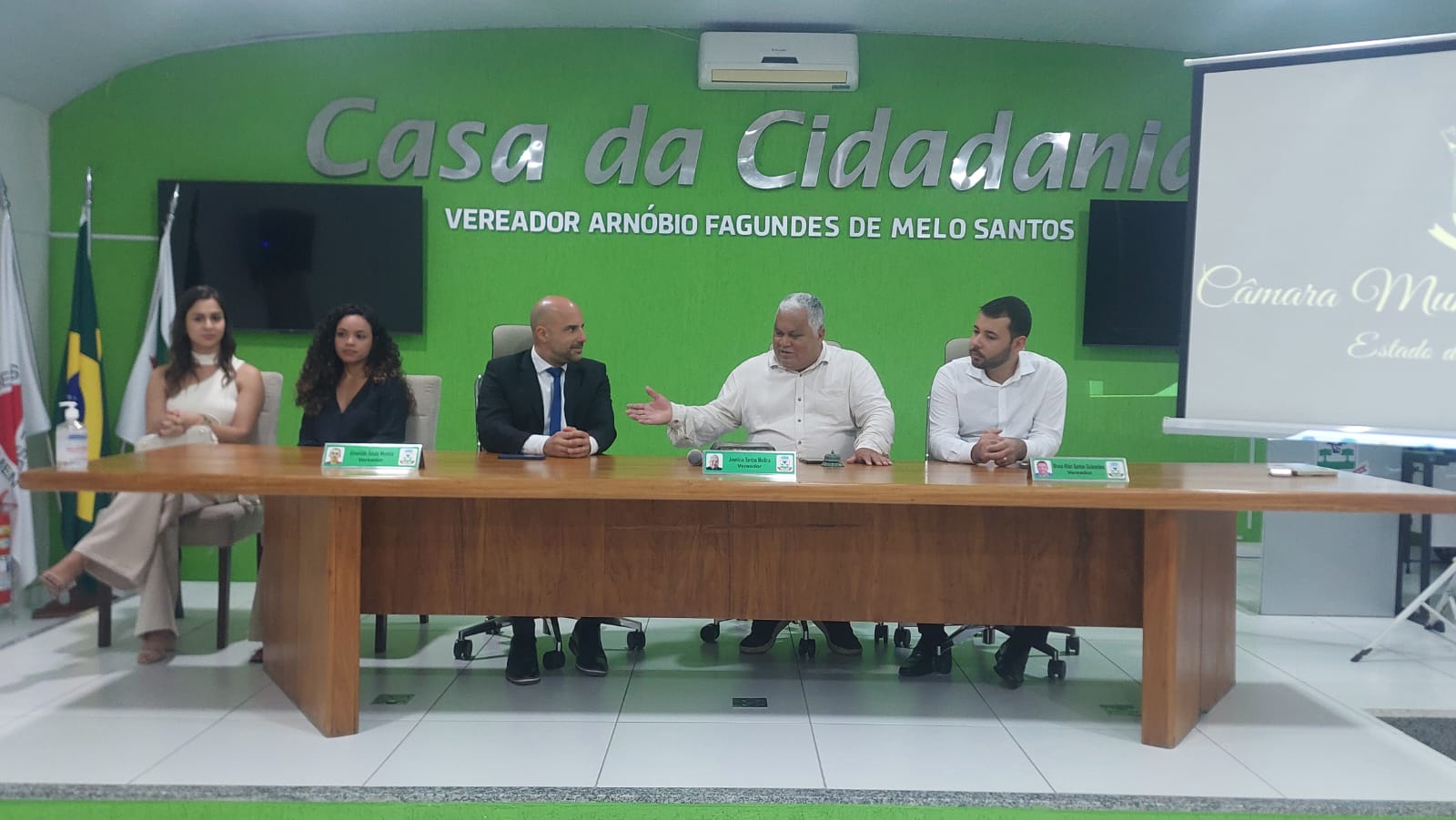Na tarde desta quinta-feira (27/11), o Diretor da Subseção Judiciária de Teófilo Otoni, Juiz Federal Dr. Antônio Lúcio Túlio de Oliveira Barbosa, acompanhado das servidoras Júlia Gonçalves (Responsável pela Unidade da Justiça Federal em Nanuque/MG) e Joyce Ferreira (Responsável pela Unidade da Justiça Federal em Caraí/MG), foram recebidos pelo Presidente da Câmara, Zezinho Medina (PP), e pelos vereadores: Secretário Bruce Guimarães (PL); Bruno Salomão (PSDB); Cau da Balança (SOLIDARIEDADE); Elson Lima (PT); Fábio Costa (PP); Lot Ignácio (PL) e Lualga Miranda (MDB).