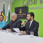 Sr. Tito Vieira Matos, Sra. Doutora Paola de Cássia Soares Sanches e Sr. Prefeito Municipal Gilson Coleta Barbosa.
