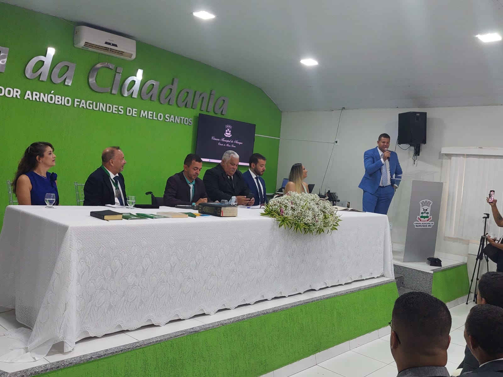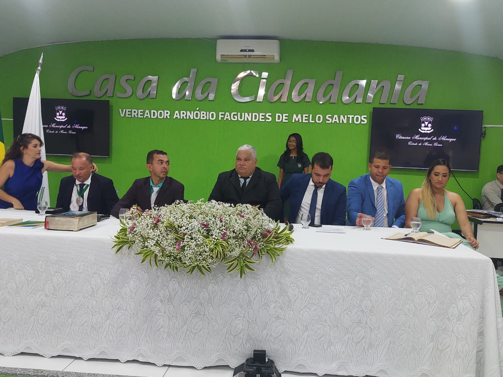 Na manhã desta quarta-feira (1°/01), o Prefeito reeleito Gilson Coleta Barbosa (PP), seu Vice Gilmar dos Santos Pereira (SOLIDARIEDADE) e os vereadores: Bruce Allan Santos Guimarães (PL); Bruno Salomão dos Santos (PSDB); Carlos Souza da Cruz (Solidariedade); Djalma Moreira (Solidariedade); Eliene Oliveira Santos Tigre (Republicanos); Elson de Souza Lima (PT); Fábio Costa de Jesus (PP); Givanildo Souza Moreira (PV); Jesualdo Pereira Damascena (PP); Joselicio Santos Medina (PP); Lot Ignácio de Souza Júnior (PL); Lualga Lopes Miranda (MDB) e Sidnei Pereira Silva (PSB). Tomaram posse para compor 19ª Legislatura (2025/2028) do Município de Nanuque.