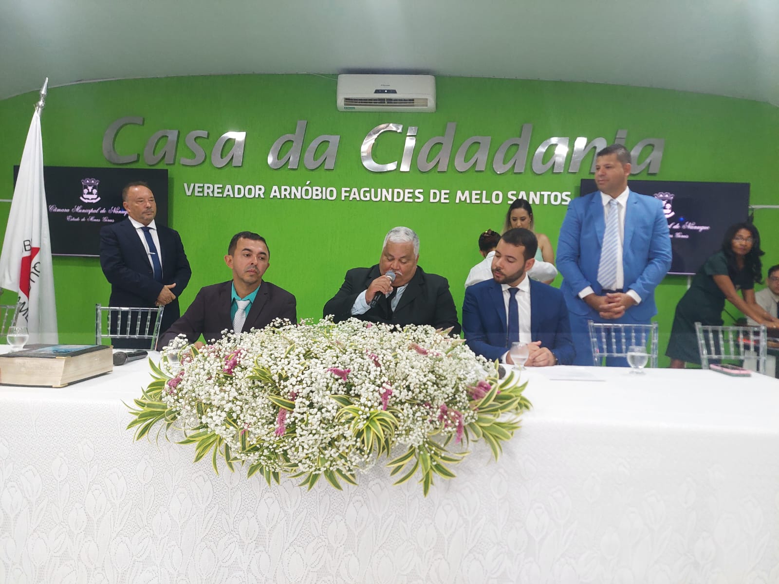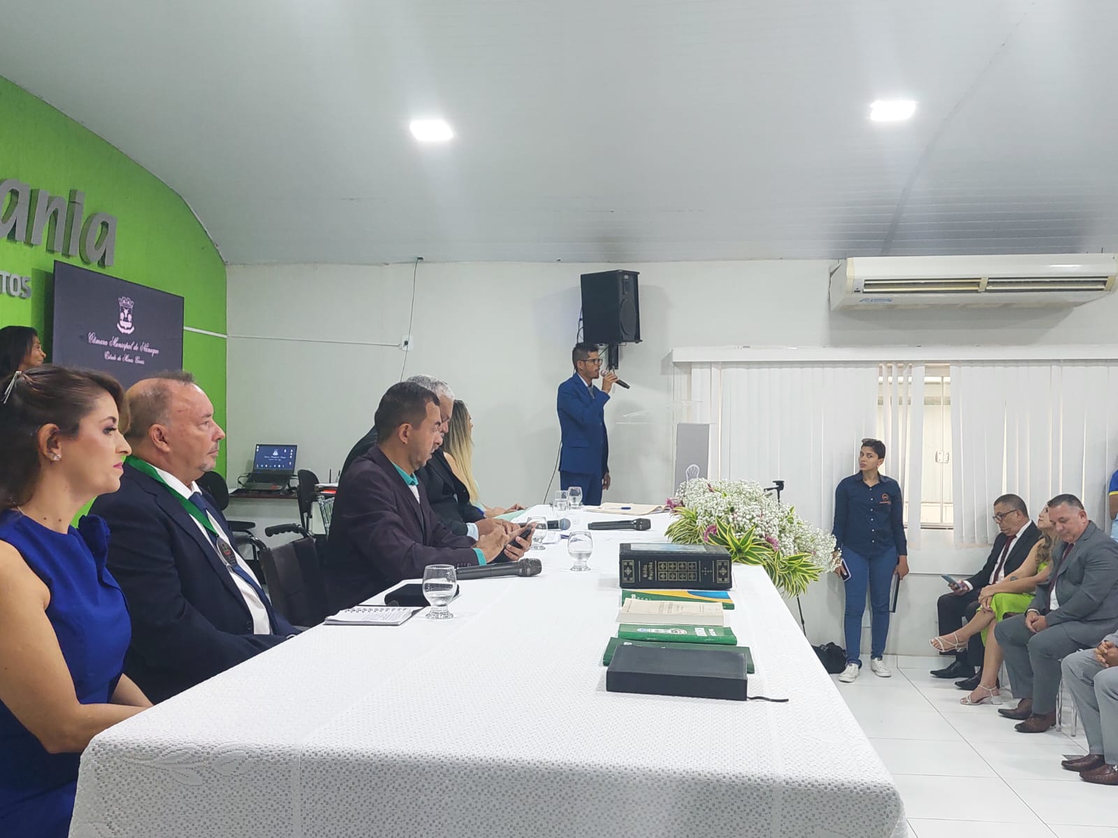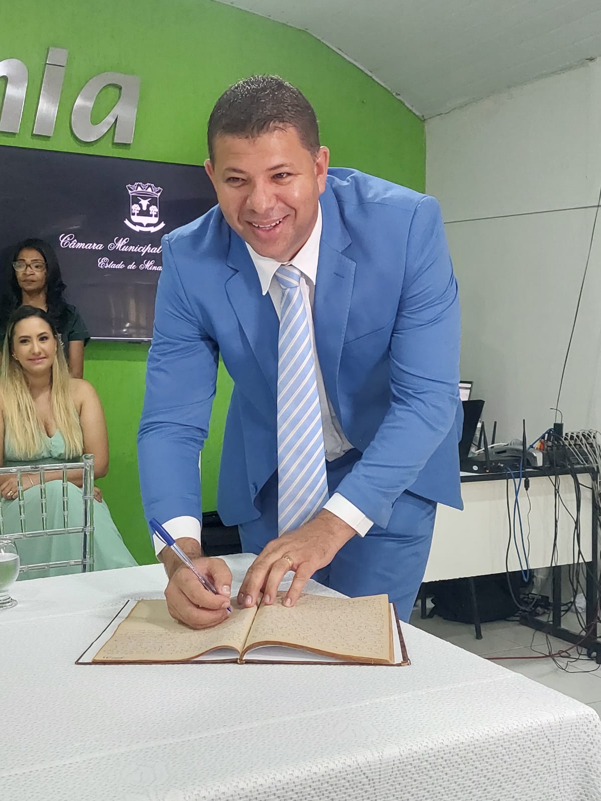 Cumprindo as determinações do parágrafo primeiro do art. 17ª, do Regimento Interno da Casa, a sessão foi Presidida inicialmente pelo Vereador Elson de Souza Lima, por ser o vereador mais idoso da Câmara e secretariado pelo Vereador Lot Ignácio de Souza Júnior. Os vereadores fizeram seus juramentos de posse, sendo, em seguida, declarada instalada a 19ª Legislatura.