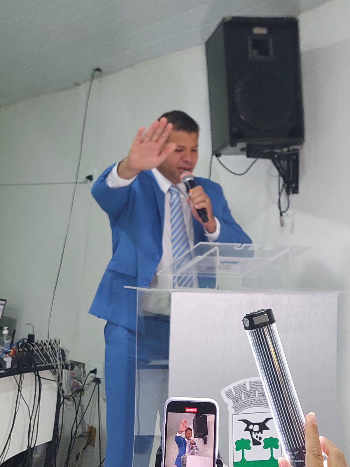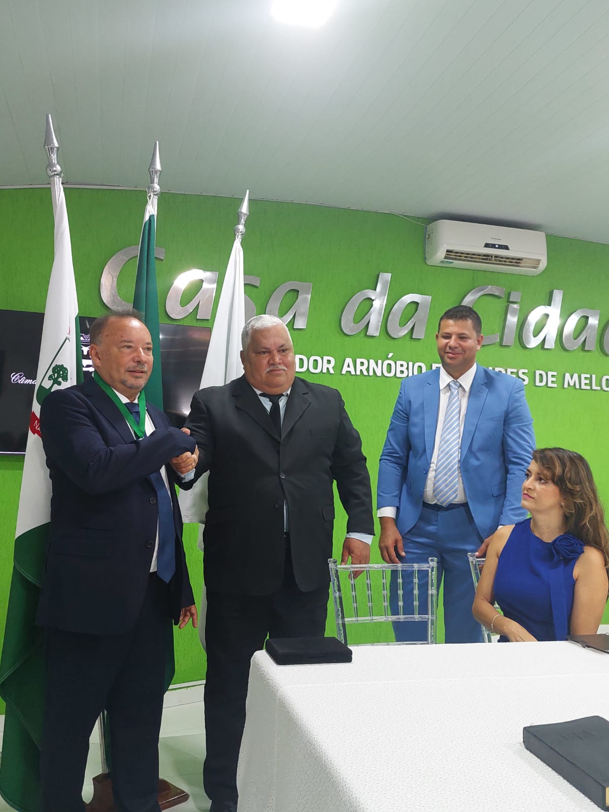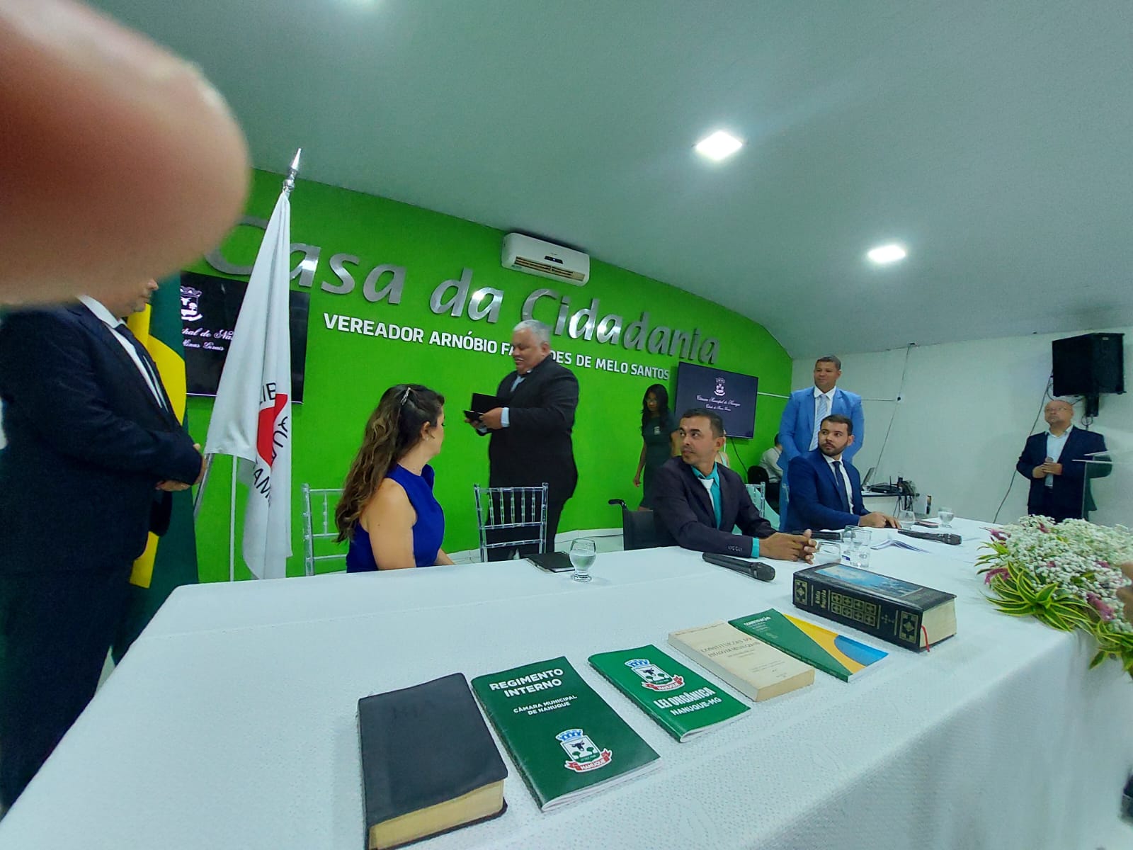 Cumprindo as determinações do parágrafo primeiro do art. 17ª, do Regimento Interno da Casa, a sessão foi Presidida inicialmente pelo Vereador Elson de Souza Lima, por ser o vereador mais idoso da Câmara e secretariado pelo Vereador Lot Ignácio de Souza Júnior. Os vereadores fizeram seus juramentos de posse, sendo, em seguida, declarada instalada a 19ª Legislatura.